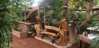 Es el espacio más amplio de todo el restaurante. Decorado con luces colgantes, fuentes con agua, mobiliario rústico y un photocall en el que pocos se resisten a retratarse. Dispone de un bar con bebidas de todo tipo, exposición de postres y animación musical. Perfecto para reuniones en familia, con amigos e incluso para comidas de empresa, grupos grandes y celebraciones.